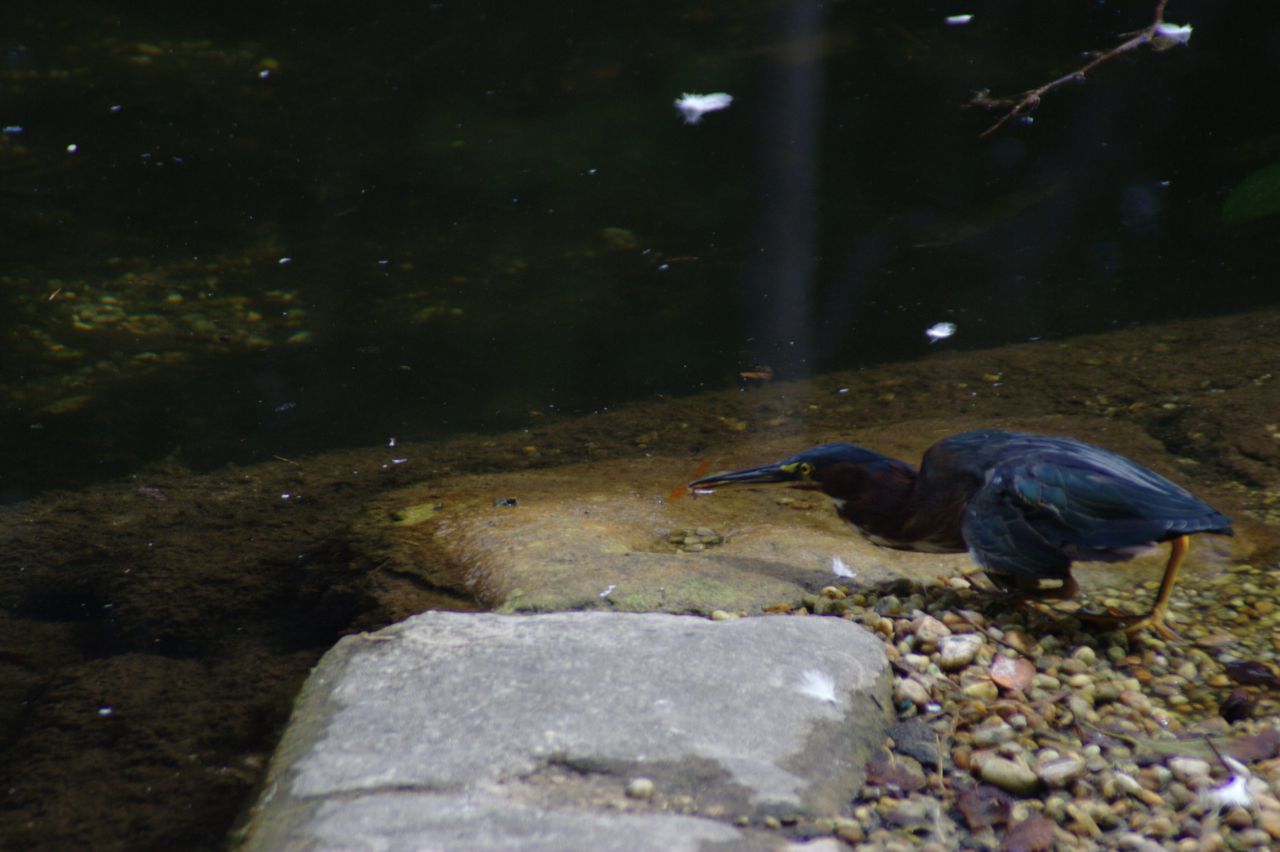 Nom Nom Nom! This bird would slowly sneak up on dragon flies. Then in an instant it would stretch out its body and snatch them. I saw it fetch 2 in 5 minutes or so. 100% success rate.